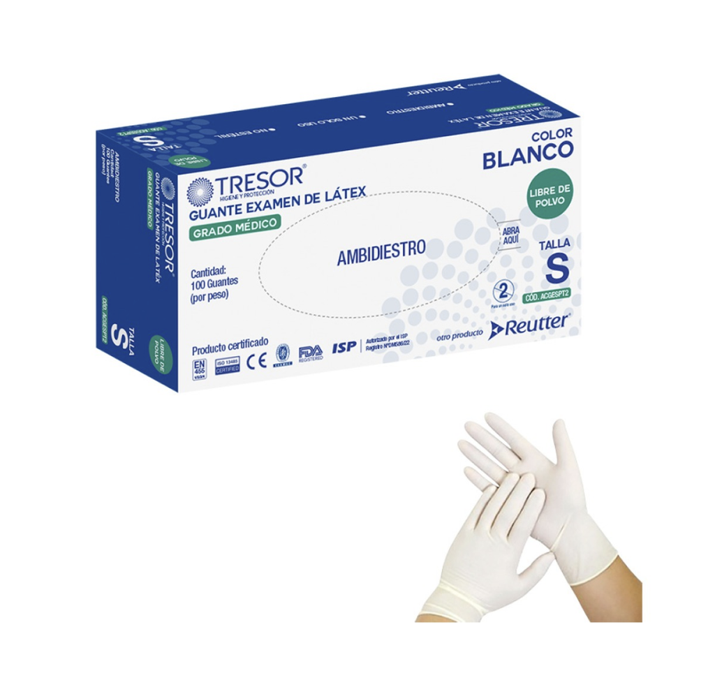 Guante Examen Latex Tresor S 100 Unidades ( Blanco)